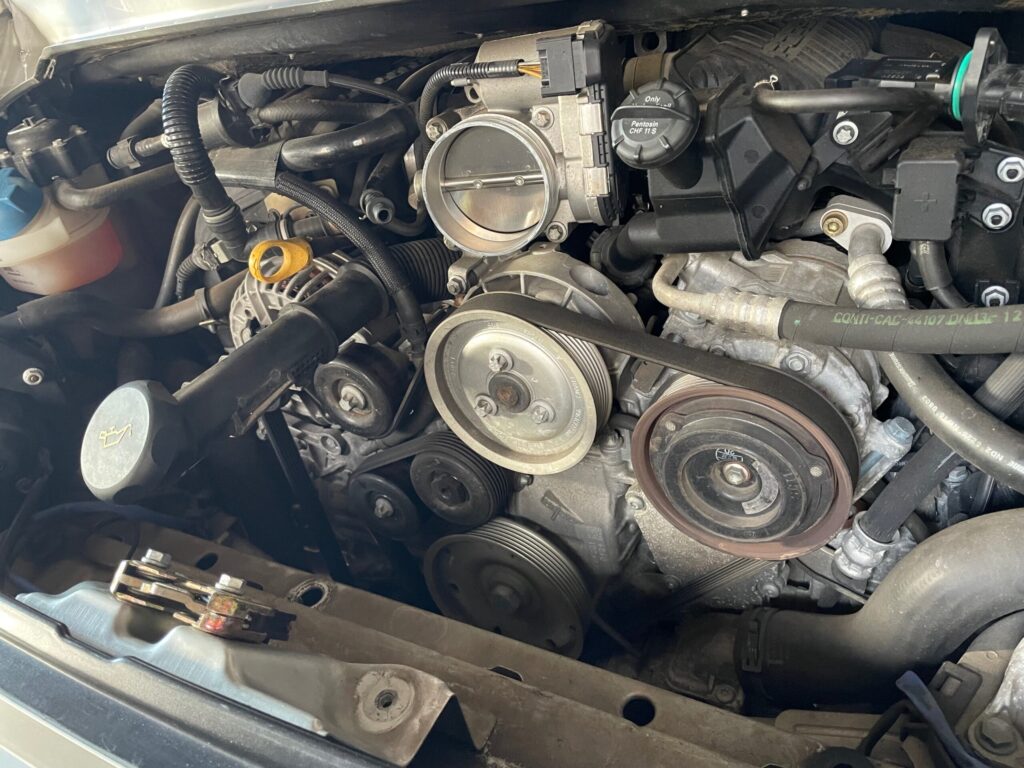 冷却系のリフレッシュと並行して実施したのが、ベルトとアイドラプーリーの交換です。