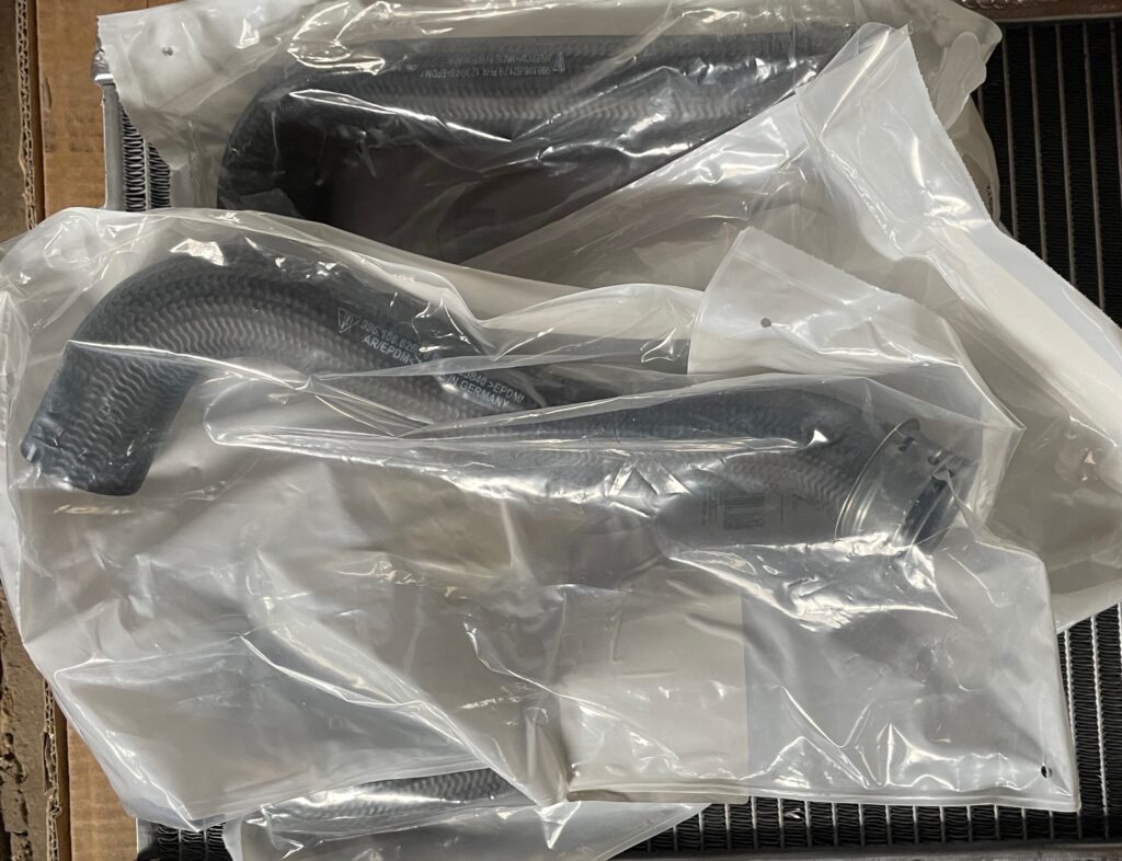 ラジエーター交換に伴い、インとアウト左右計4本のホースも刷新しました。ここで重要なのは、ホース類は「純正」を選んだことです。ゴムパーツのフィッティング精度や耐久性は、安価な社外品ではリスクが高い。ここは「安心」を金で買うべき部位だと判断しました。